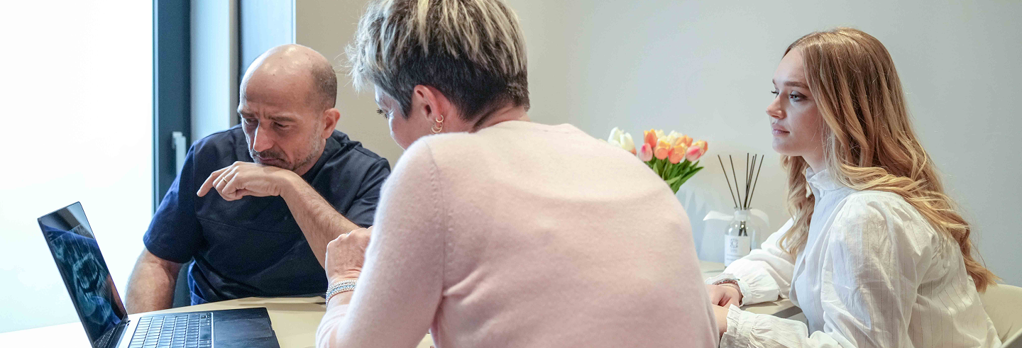 Vogliamo che ogni nostro paziente affronti il percorso con serenità e sicurezza, sapendo sempre cosa aspettarsi. Ogni nostro trattamento è quindi preliminarmente studiato e programmato insieme a lui, nel dettaglio. Per questo motivo è fondamentale conoscere sin da subito aspettative, desideri, preferenze e priorità di ciascun paziente: questo ci permette di progettare il piano di trattamento corretto e adatto al singolo caso. Ogni decisione è presa in via preliminare, preparando un preciso piano di cura con un relativo piano contabile. Nessuna prestazione viene eseguita senza un relativo preventivo di spesa e senza il consenso esplicito del paziente. Ogni fase di trattamento è spiegata in modo chiaro, preciso e dettagliato.